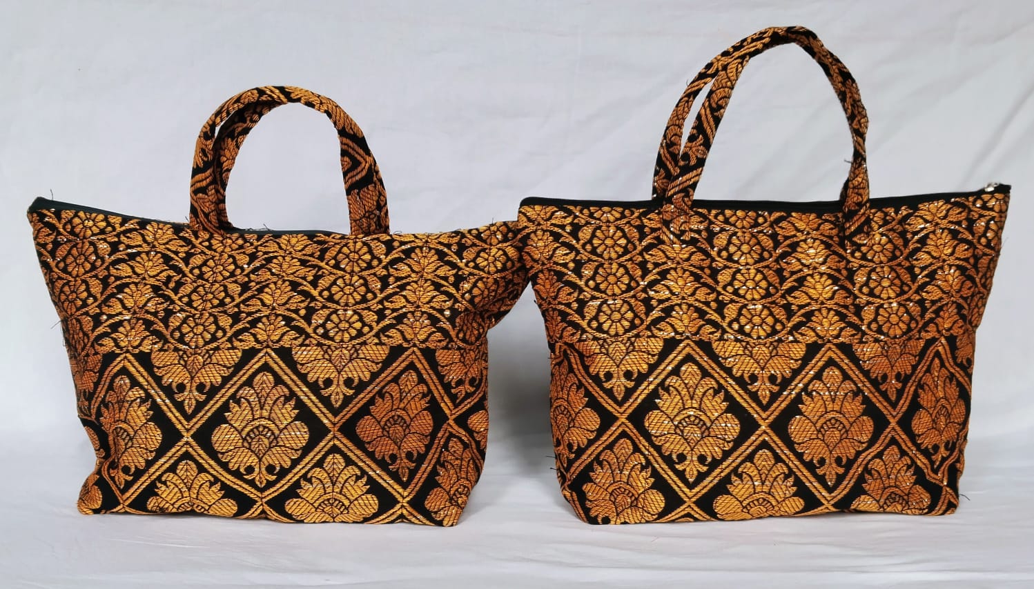 Assam Ethnic Cotton Handmade Tote Bag (Black & Orange)