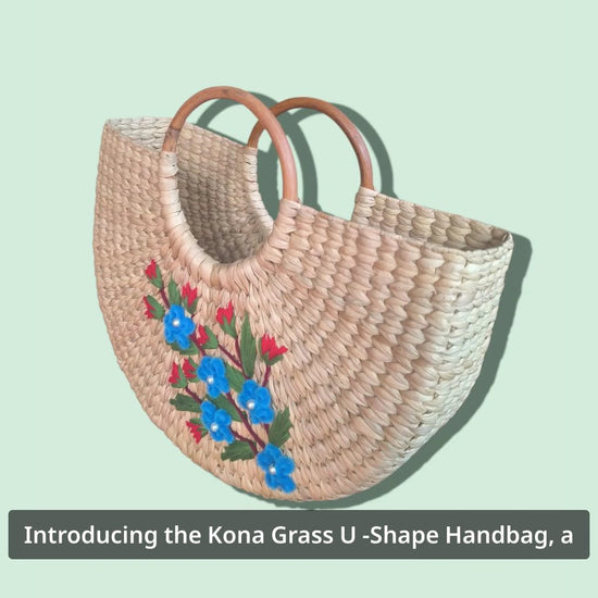 This elegant Kauna Grass U-Shape Embroidery Design Handbag is a beautifully handcrafted accessory made from natural Kauna grass by skilled artisans of Assam and North-East India. The stylish U-shape design combined with colourful embroidery in Blue, Pink, and Red gives the handbag a vibrant and fashionable ethnic appeal.