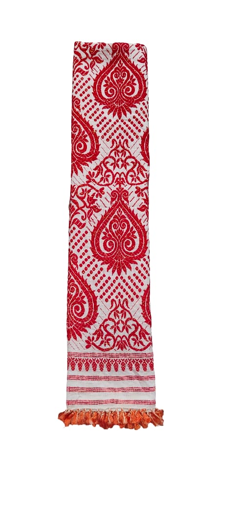 It reflects the rich textile heritage of Assam and is widely used during Bihu festivals, felicitation ceremonies, and cultural programs as a symbol of respect and honor.